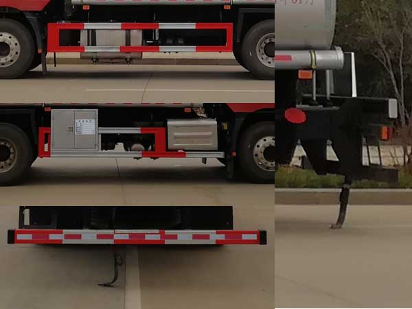 | 配置 | 1、該車適用于危險品運輸,運送危險貨物車輛類型為:FL型,類項號:3。運輸介質(zhì):汽油,密度:700千克/立方米。罐體有效容積21.4立方米,罐體外形尺寸(長×寬×高)(mm):7000×2350×1580。2、側(cè)、后防護(hù)材料均為Q235,螺栓連接;后防護(hù)截面尺寸(寬×高)(mm)60×120,下邊緣離地高500mm。3、EBS系統(tǒng)生產(chǎn)廠家及型號分別為:威伯科汽車**系統(tǒng)(**)有限公司(EBS3)。僅選用排氣管前置、限速裝置(限速79km/h)、前輪盤式制動及子午線輪胎的底盤;安裝帶有衛(wèi)星定位功能的行駛記錄儀;發(fā)動機(jī)型號及油耗值(L/100km)為:WP7.270E61/36.79,WP7.300E61/36.79。后軸采用空氣懸架。轉(zhuǎn)向輪安裝輪胎爆胎應(yīng)急防護(hù)裝置。 | ||