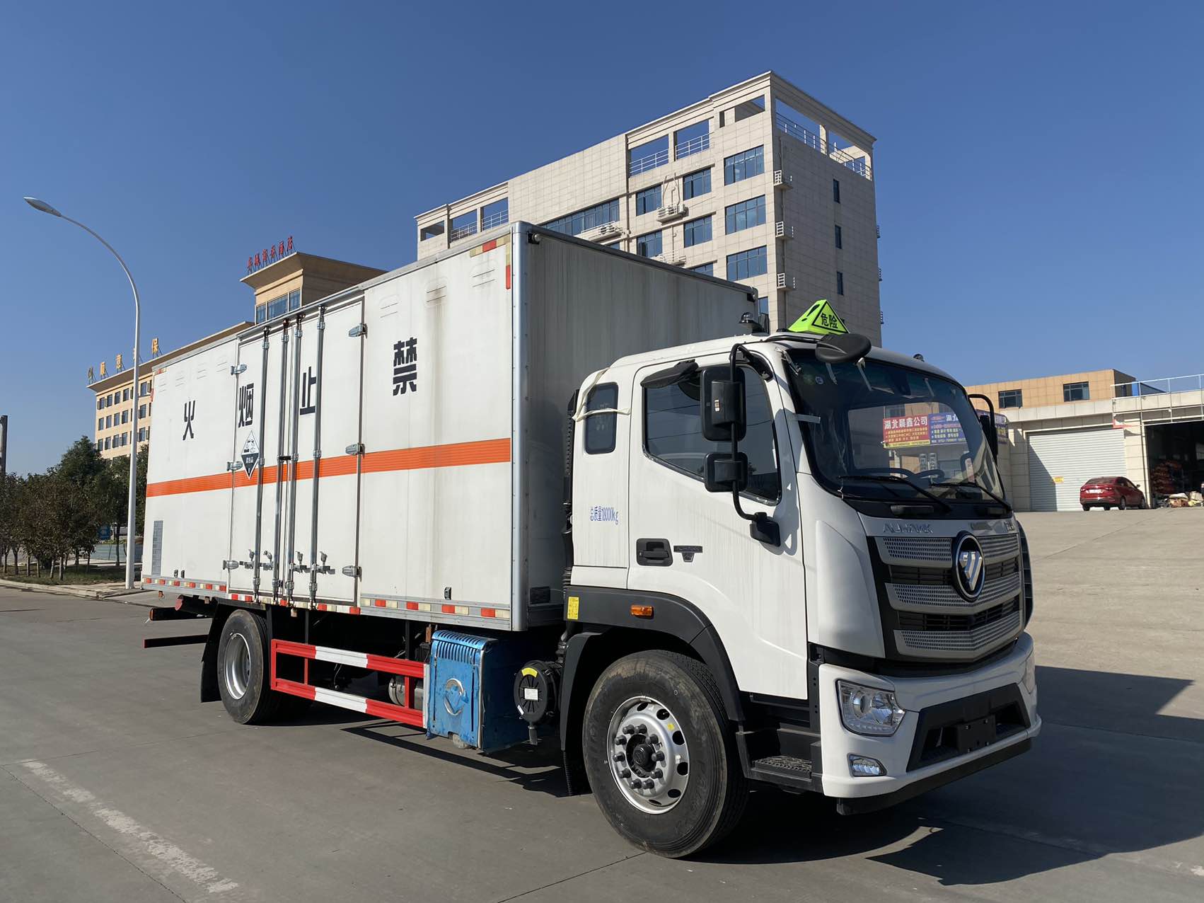 | 備注 | 該車(chē)為危險(xiǎn)品運(yùn)輸車(chē),隨底盤(pán)選裝駕駛室,選裝后視鏡,選裝側(cè)開(kāi)門(mén)型式及位置,選裝不開(kāi)側(cè)門(mén),選裝不同箱體外觀,選裝后部樣式,選裝后部尾燈架樣式,安裝限速裝置,限速80km/h,車(chē)廂頂部封閉且不可開(kāi)啟;運(yùn)輸獨(dú)立容器(瓶)包裝的貨物; |