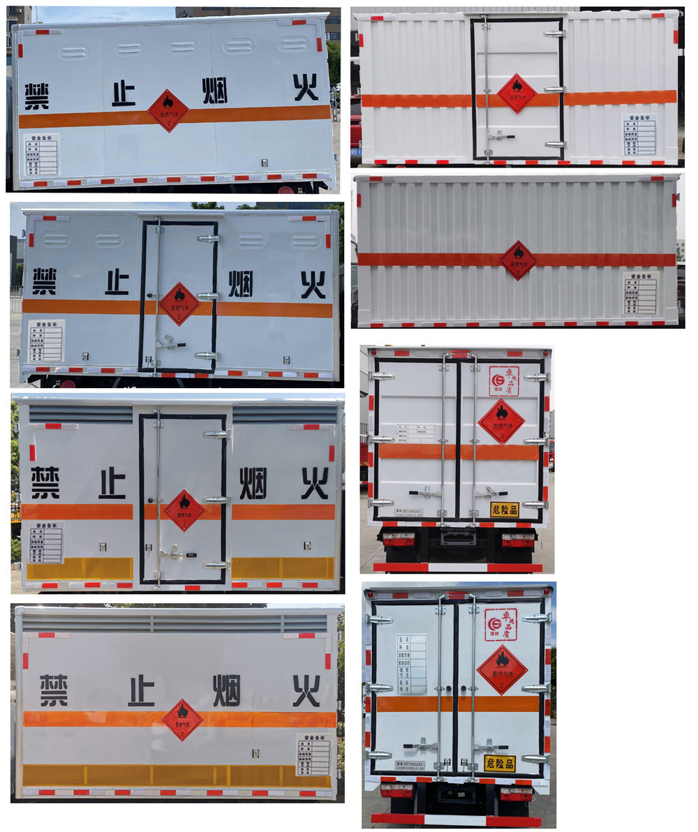 | 其它: | 該車適用于運輸危險品。廂體頂部封閉,不可開啟。運輸具有獨立容器包裝的易燃氣體及運輸具有獨立容器包裝的非易燃無毒氣體。運送危險品類項號:2.1,2.2。僅選用排氣管前置、限速裝置(限速80km/h)、前輪盤式制動及子午線輪胎的底盤,安裝帶有衛(wèi)星定位功能的行駛記錄儀。ABS廠家及型號:襄陽東風(fēng)隆誠機械有限責(zé)任公司/ABS/ASR-12V-4S/4M.發(fā)動機/油耗值(L/100km)對應(yīng)關(guān)系為:LJ4A15Q6/9.1.該車型可選裝ETC車載裝置.廂體側(cè)面選裝開門型式及位置,選裝不帶側(cè)開門,選裝瓦楞板結(jié)構(gòu);廂體側(cè)面板選裝開百葉窗。整備質(zhì)量含備胎,滅火器及隨車工具;貨廂重量為740kg;材質(zhì)/厚度:復(fù)合板結(jié)構(gòu)廂體:底板材質(zhì)為Q235,厚度3mm,側(cè)板為外冷扎鋼板+中間阻燃泡沫+內(nèi)純鋁板,厚度42mm;瓦楞板結(jié)構(gòu)廂體:底板材質(zhì)為Q235,厚度3mm,側(cè)板為冷扎鋼板,厚度1.5mm。 |