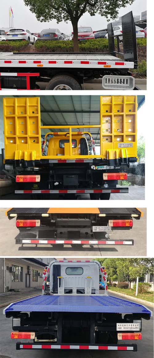 | 配置 | 該車主要用于道路摩托車清障,主要專用裝置為平板、絞盤、鋼絲繩、油缸。托舉質量:500kg;側防護采用冷彎型鋼/Q235,螺栓連接;后防護采用冷彎型鋼/Q235,焊接,截面尺寸100×50mm,離地高450mm。平板后部選裝上尾板及選裝無上尾板。隨底盤選裝排半駕駛室,選裝改側窗的駕駛室,選裝新前臉駕駛室,選裝不同的側門結構,選裝新結構的保險杠。ABS防抱死制動系統(tǒng)生產(chǎn)廠家/型號:1.廣州瑞立科密汽車電子股份有限公司/CM4XL-4S/4M;2.浙江萬安科技股份有限公司/VIE ABS-II。選裝龍門架樣式。 | ||