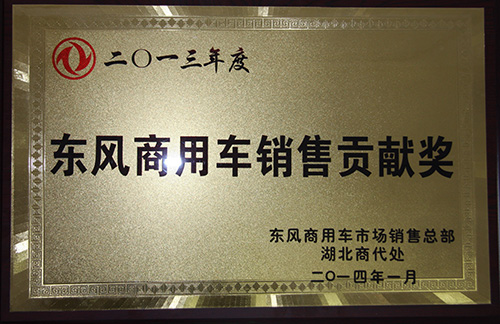 廈工楚勝獲得2013年東風(fēng)商用車銷售貢獻(xiàn)獎(jiǎng)