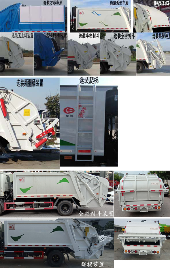 | 配置 | 1、該車主要專用裝置由箱體、壓縮系統(tǒng)組成,用于垃圾的收集與清運。該車可選裝方形或弧形箱體,選裝全密封蓋裝置,選裝方形擋泥板,選裝箱體前部爬梯,選裝后部工作裝置。選裝工作裝置時,外形長(mm)/后伸(mm)/整備質(zhì)量(kg)對應(yīng)關(guān)系:①無上料裝置: 6525/-/5530;②擺臂裝置: 6685/160/5850;③全密封斗裝置:6725/200/5850;④翻桶裝置,半密封斗裝置:6925/400/5850。2、側(cè)防護采用冷彎型鋼/Q235,螺栓連接;后防護由專用裝置替代,下邊緣離地高500mm。3、ABS系統(tǒng)型號:VIE ABS-II,ABS系統(tǒng)生產(chǎn)廠家:浙江萬安科技股份有限公司。發(fā)動機JX4D30D6H的油耗值為13.9 L/100km。隨底盤選裝左右車門上方黑色貼膜可選擇取消。選裝輪輞外觀。選裝前臉、前部燈具。該車型可選裝ETC車載裝置. | ||